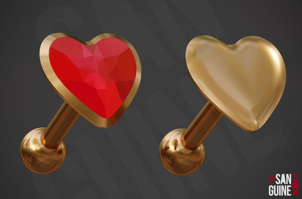 Blend file with 4 types of labret piercings, with 4 different finishes: